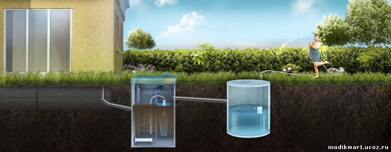 Отвод очищенной воды в накопительный резервуар для повторного использования